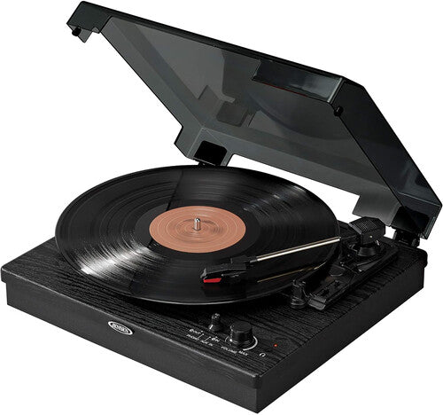 JENSEN JTA-315 Dual-Direction Bluetooth Belt-Drive Turntable with Speakers, Black, JTA-315
