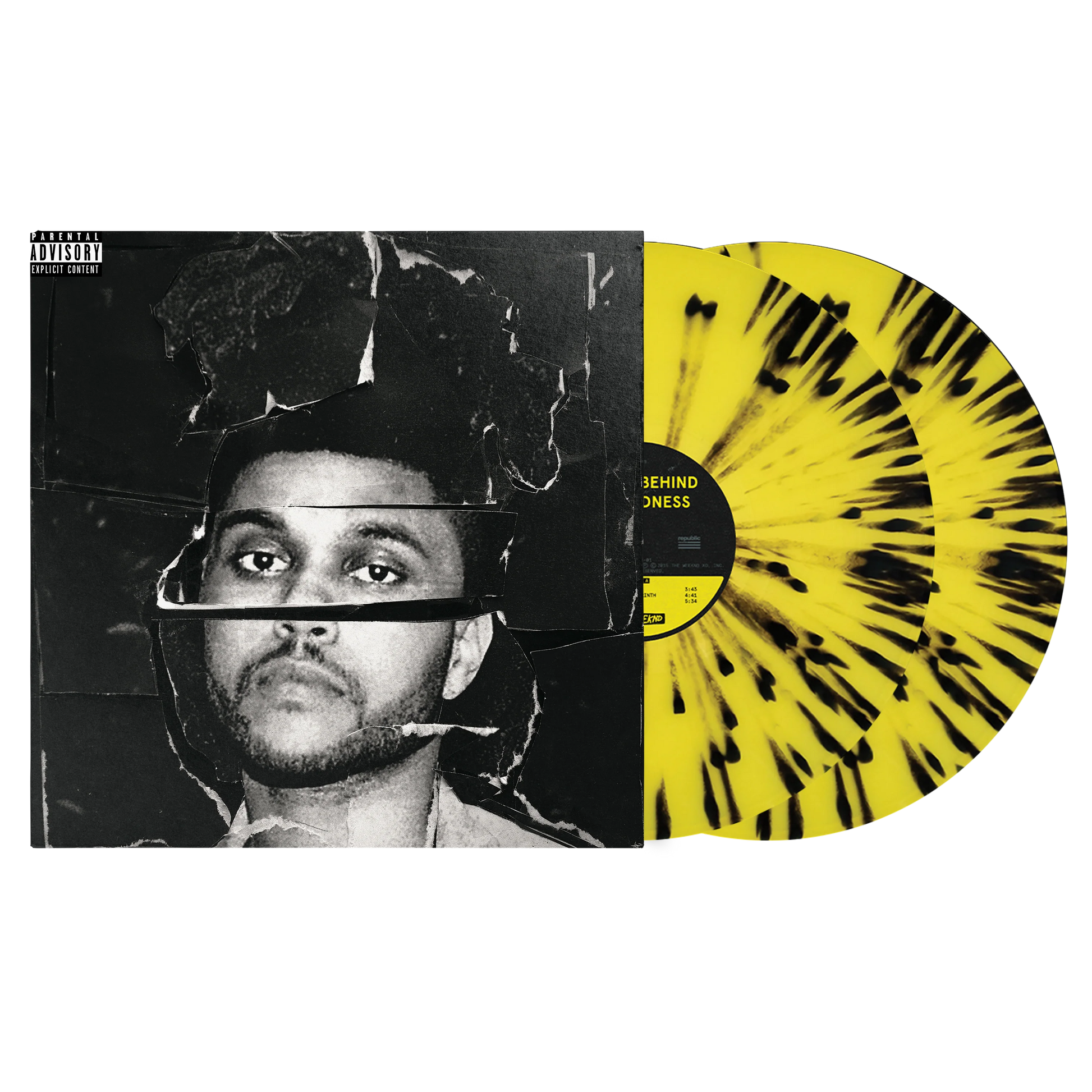 The Weeknd's sophomore studio album Beauty Behind The Madness was released in 2015 and features the #1 hits "Can't Feel My Face" and "The Hills." 5th Anniversary Edition 2 LP set is pressed on 180-gram yellow with black splatter vinyl.